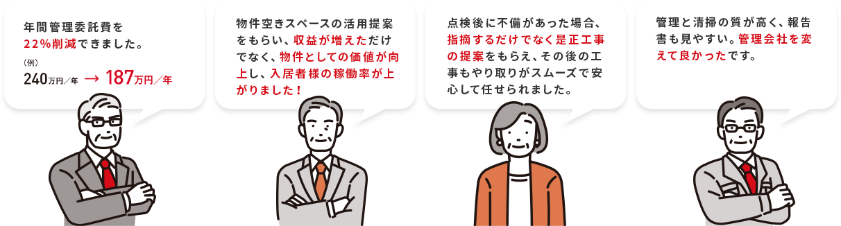 ご依頼いただいた清掃や点検などを行うだけでなく、物件の収益・資産価値を向上させる様々なご提案により貴社を強力にサポートいたします。